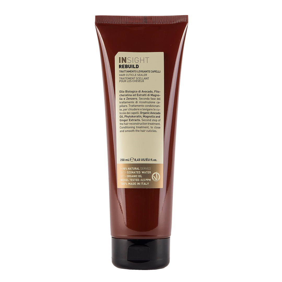 Segunda fase del tratamiento REBUILD. El Sealer cumple una acción acondicionadora, para cerrar y alis- ar las cutículas del cabello. Su fórmula de pH ácido, que se debe aplicar después de enjuagar el Sérum, contiene ingredientes capaces de proteger la cutícula exterior, sellar la nutrición aportada previamente en el interior del cabello y mejorar el brillo